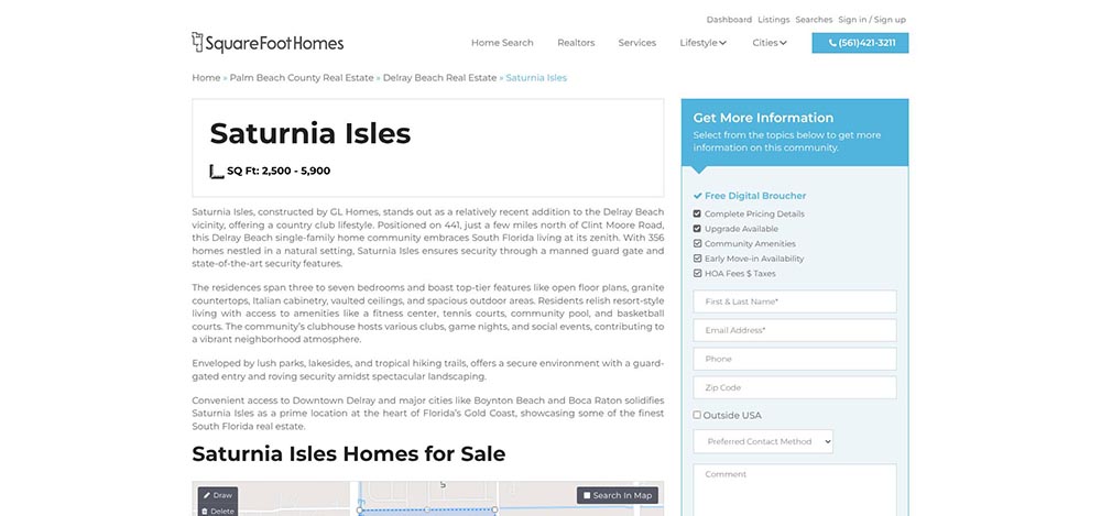 Saturnia Isles Delray Beach homes for sale listings screenshot.